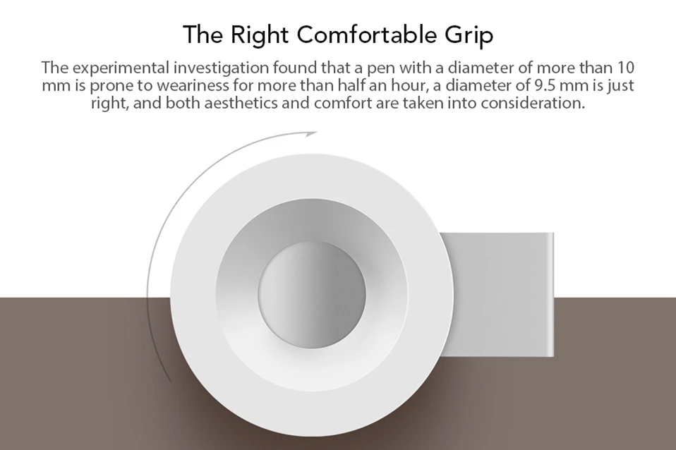 Экспериментальные исследования показали, что ручка с диаметром более чем 10 мм склонен к усталости более чем на полчаса, диаметром 9,5 мм-это именно то, что, И эстетика и комфорт принимаются во внимание.