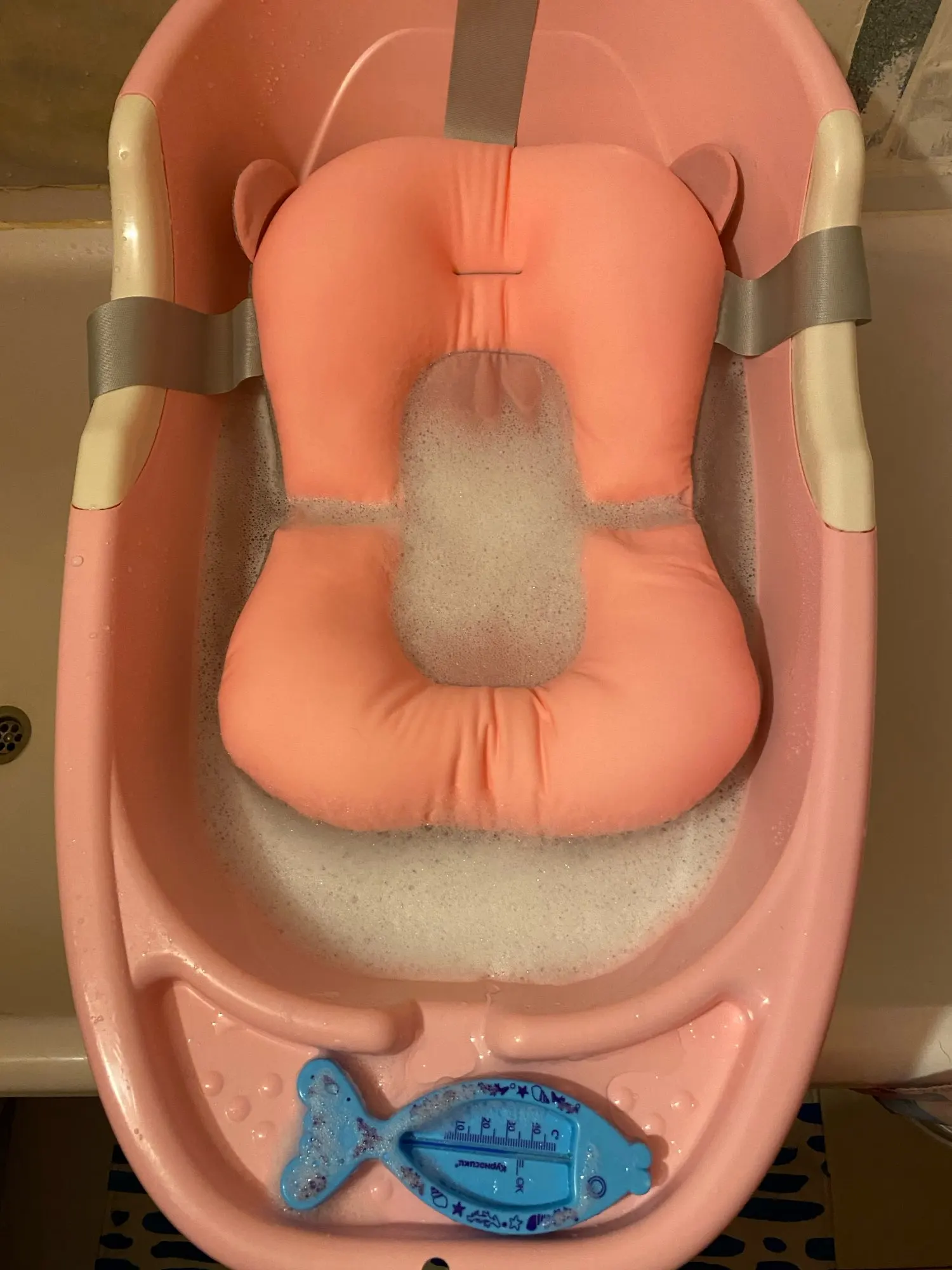 Красивое сидение и очень удобное на все 100! Ребёнку нравится лежать на нем. В воде сидение плавает, что очень помогает купать ребёнка и при этом ребёнок не скользит как на пластмассовой горке. Качество отличное, мне понравилось. Все сделано очень аккуратно. Внутри сидение наполнено мелкими шариками это дополнительный массаж для ребёнка. Однозначно рекомендую!