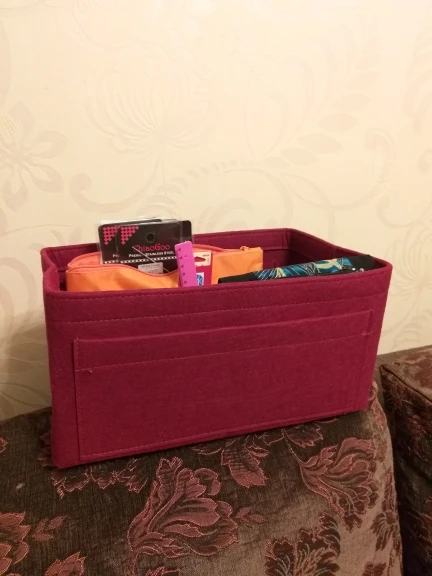 Невероятный органайзер для сумок, которые не держат форму самостоятельно. Заказала в 2 цветах, оба отличные и по форме, и качество на высоте. Достаточное количество кармашков, но главное, что не приходится ковыряться в сумке в поисках мелочевки. Все разместила в отсеки. Все отлично. Пришло буквально дней за 10-12. Продавца однозначно рекомендую, так как никаких нареканий нет...