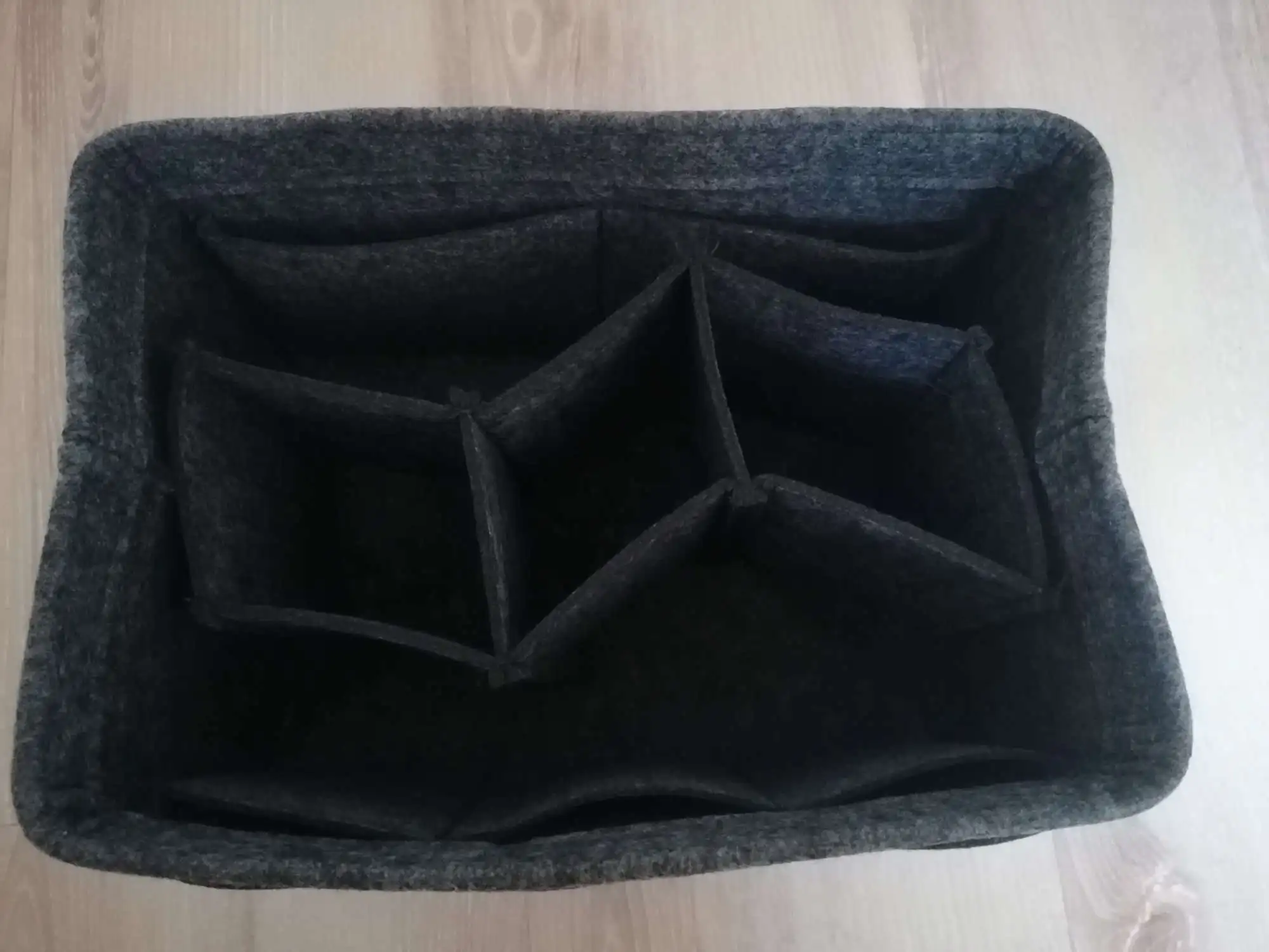 Толстый Органайзер для сумки из войлока. Мне очень нравится, что он не флоп и может стоять самостоятельно. В нем много карманов для разных вещей.