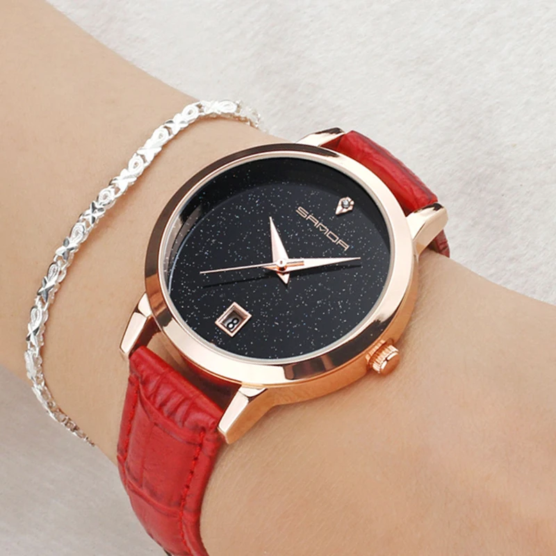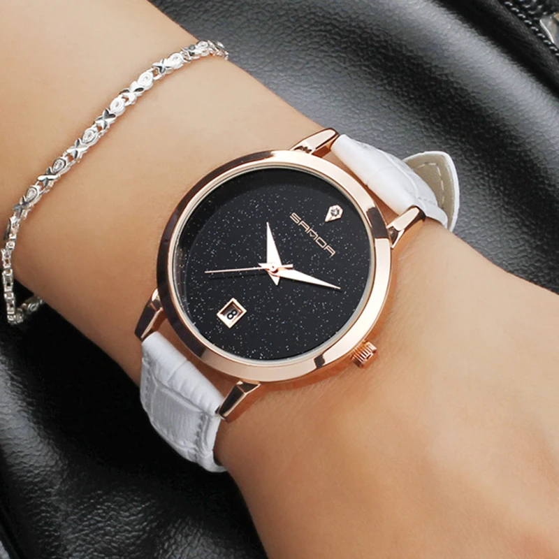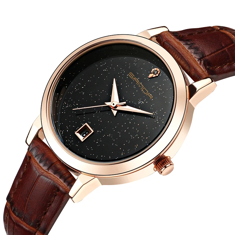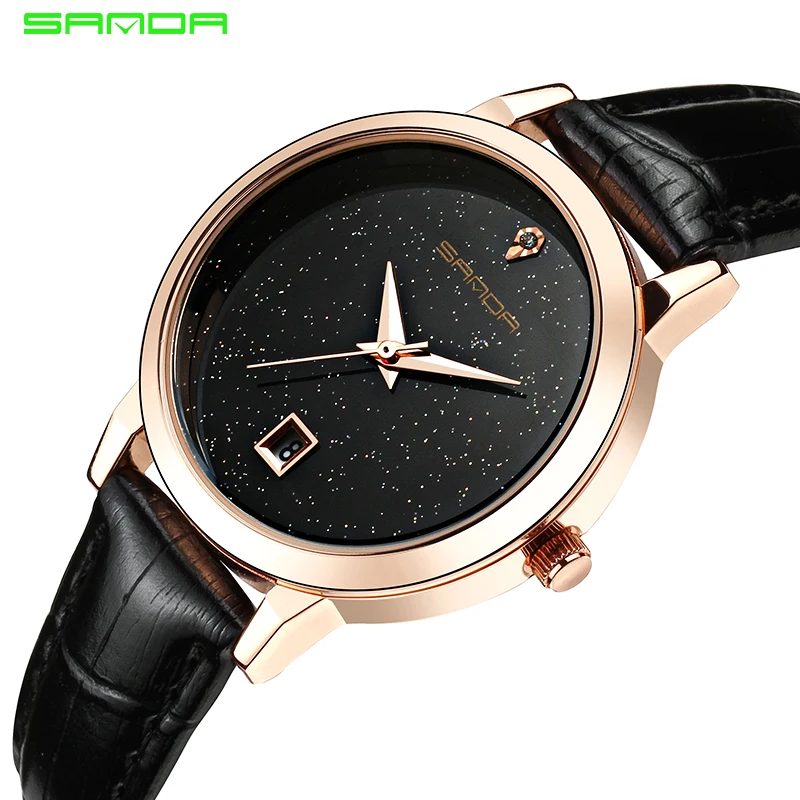2019 SANDA модные женские часы со звездным циферблатом, роскошные золотистые женские часы с кожаным ремешком, женские часы с календарем, женские часы P194