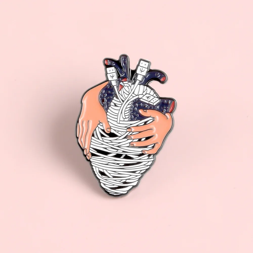 Брошь GDHY с эмалью, значок в виде медицинского анатомического сердца, звездного сердца, храбрости, кошек, крови, обнимающая брошь, Ювелирное Украшение