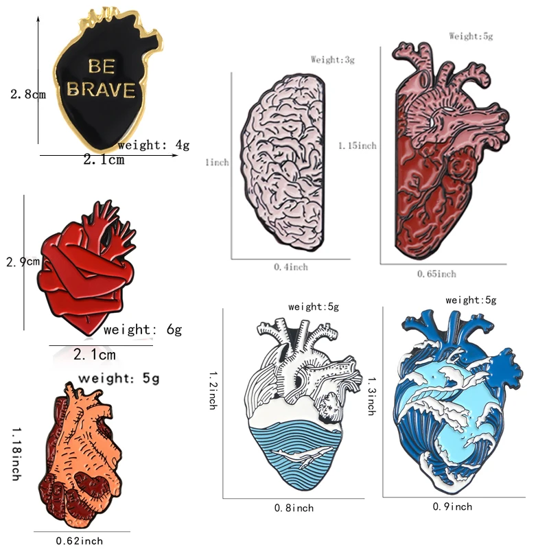 Анатомические булавки в форме сердца, эмалированные булавки, медици...