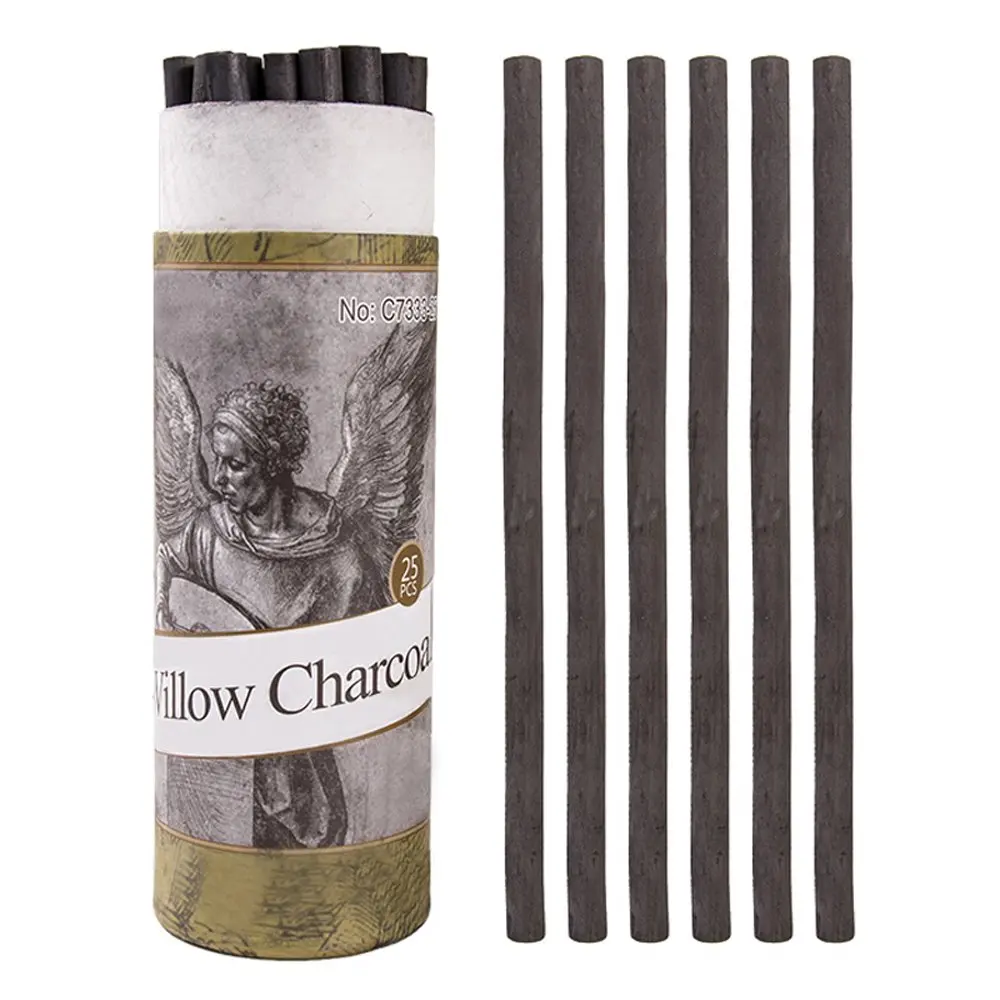 Высокое Качество художник ивы лоза скетч палочки для древесного угля прибл. 4-5 5-7 7-9 мм набор из 25 простых цветов можно протирать и стирать