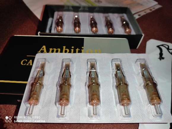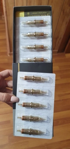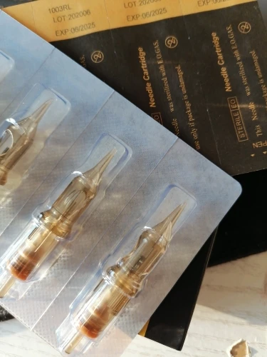Быстрая доставка-3 дня(даже быстрее чем в российских проф. магазинах), посылка очень хорошо упакована, картриджи мне понравились, но пока только тренировалась на латексе, т.к. новая машинка.