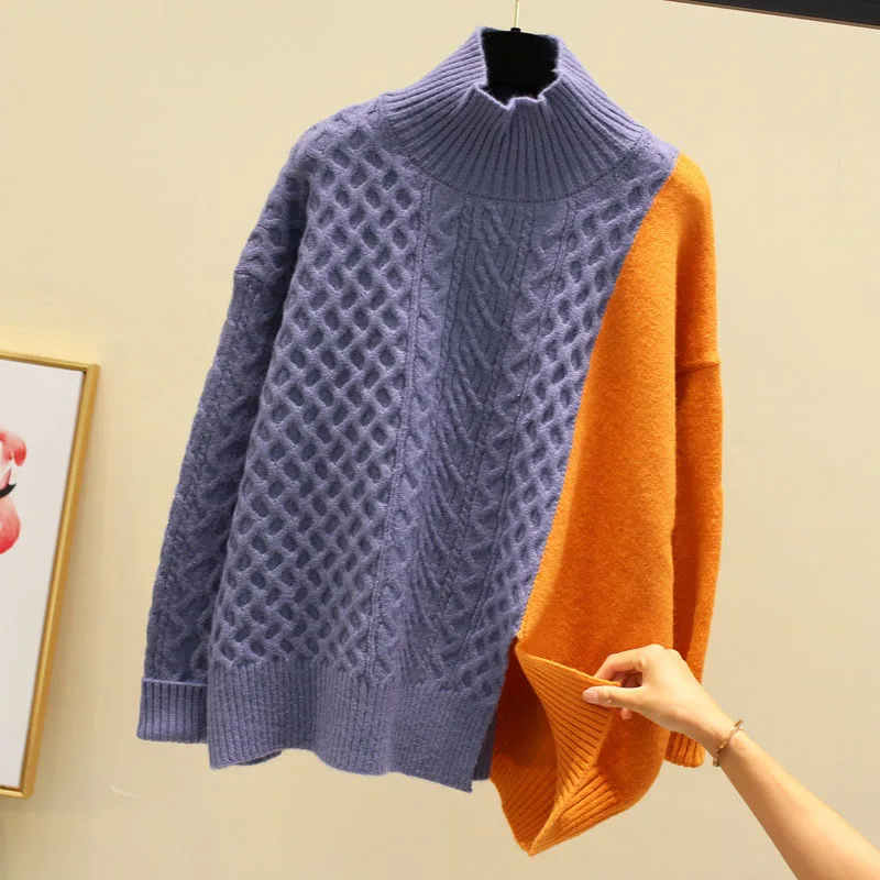 Свитер женский трикотажный, в стиле пэчворк, зимний