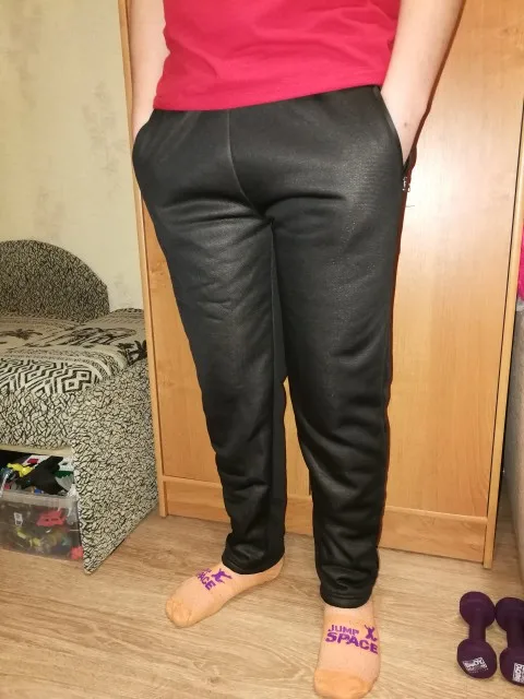 Брюки обалденные. Очень теплые и очень удобные. Брала себе, поскольку у китайцев для женщин все короткое. Брала, чтоб дома носить, но они имеют приличный вид, поэтому спокойно можно носить на улицу. Гладятся хорошо, нитки не торчат, швы ровные. У меня рост 178см, обхват бедер 120см. Размер подошел отлично! По ширине штанины у бедра 66см, посадка высокая. Рекомендую однозначно