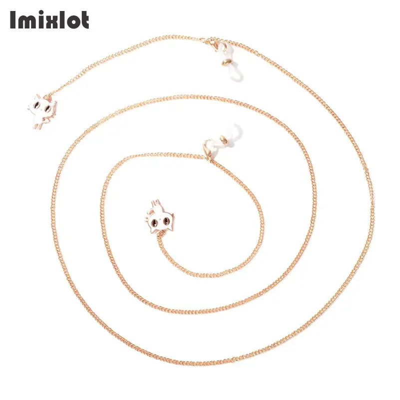 Цепочка для очков женская с подвеской, модная цепочка для очков золотого и серебряного цвета, милый котенок, Солнцезащитная цепочка для очков для чтения шнур для очков, шейный ремешок