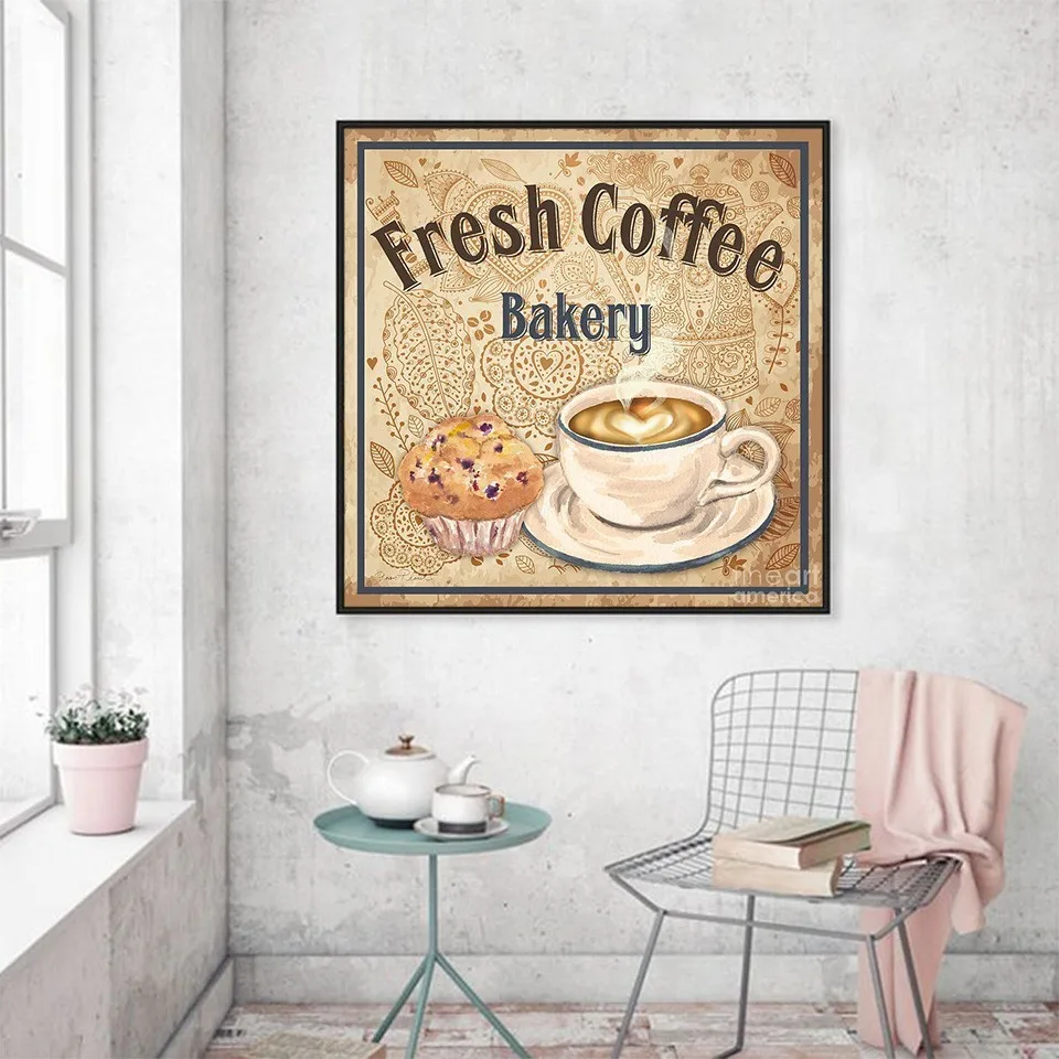 Алмазная картина, полностью квадратная Алмазная вышивка, картинка с изображением кофе, стразы, Алмазная мозаика, полный макет, декор стен