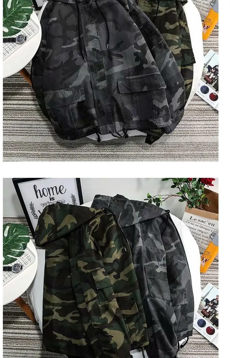 Куртка мужская камуфляжная с капюшоном, модная вареная ветровка в стиле милитари, уличная одежда, Свободный бомбер в стиле хип-хоп, одежда на весну