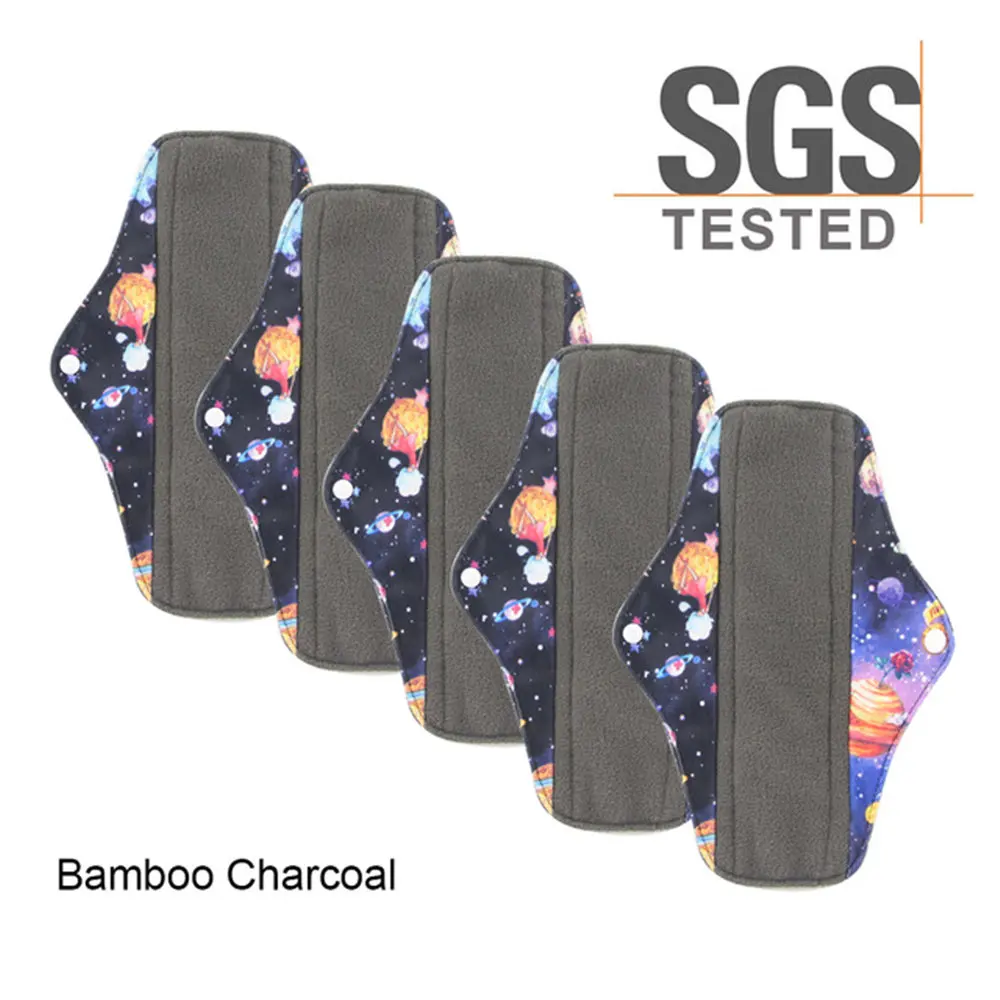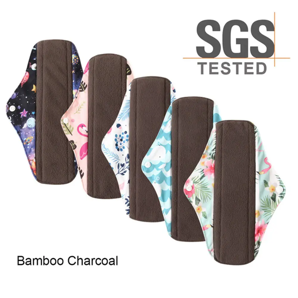 5 шт. тканевые гигиенические салфетки абсорбирующие многоразовые древесный уголь бамбуковые женские менструальные прокладки хлопок Mama тканевые прокладки моющиеся полотенца