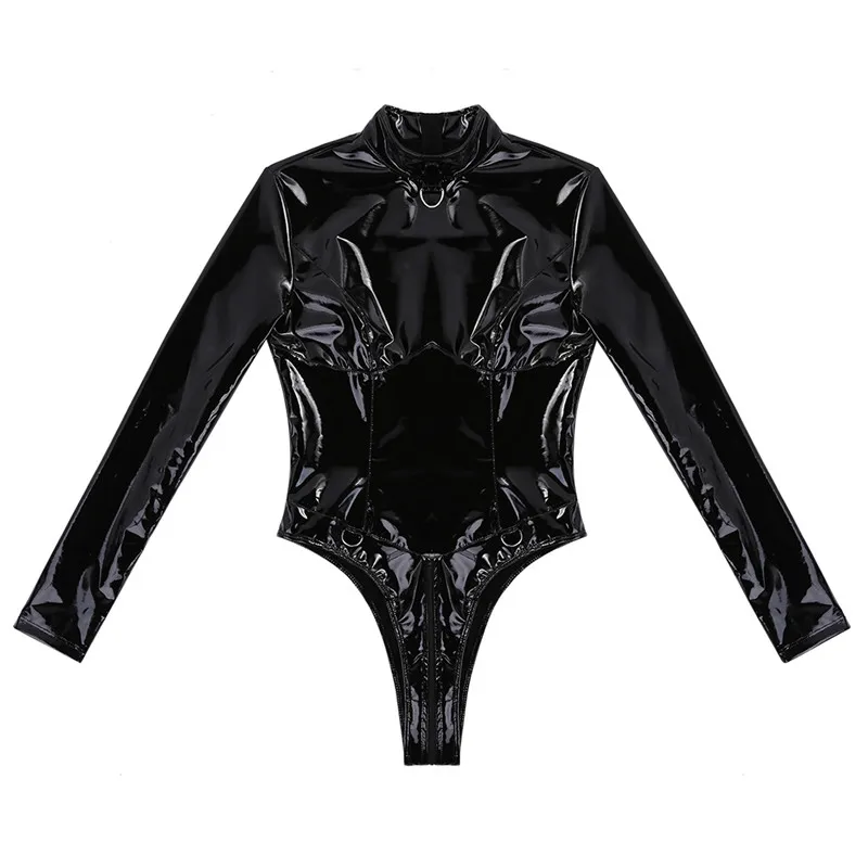 Особенности: Женский цельный купальник из лакированной кожи с высоким вырезом, мокрый внешний вид. Высокий воротник и длинные рукава, двойная молния проходит от задней шеи до передней промежности для одевания и доступа. Металлические D-образные кольца расположены на шее и высоком бедре для креплений. Изготовлен из легкой и гладкой ткани, мягкий и удобный в носке. Идеально подходит для романтической ночи, танцев, выступлений на сцене, клубов, вечерние, ночных прогулок и т. д. Перед заказом внимательно ознакомьтесь с размерами ниже, рекомендуется ручная стирка в холодной воде.