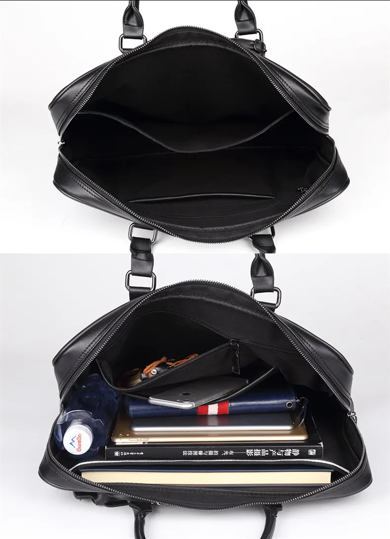 Портфель кожаный деловой для мужчин и женщин, брендовая сумка для ноутбука, однотонный черный повседневный тоут, 2022