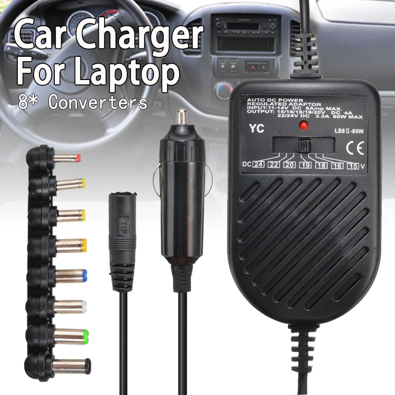 Универсальное автомобильное зарядное устройство DC адаптер для ноутбука + 8 съемные заглушки зарядное устройство для комьютера для ноутбука hp ASUS DELL lenovo