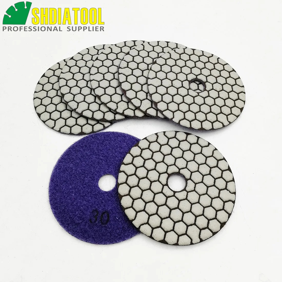 Алмазные полировальные диски SHDIATOOL, насадки для сухой полировки, диаметр 4 дюйма100 мм #30, для гранита, мрамора, керамики, 7 шт.
