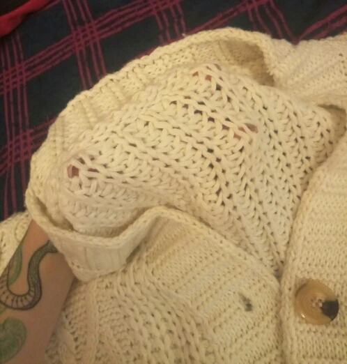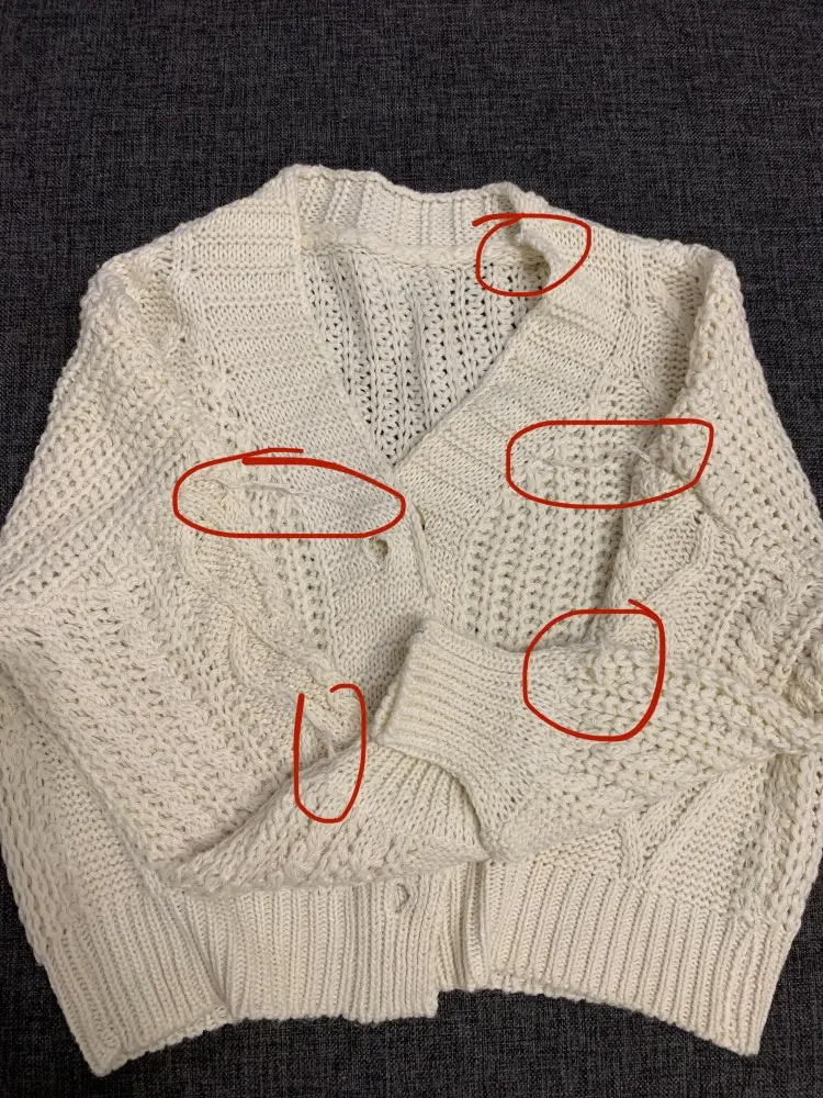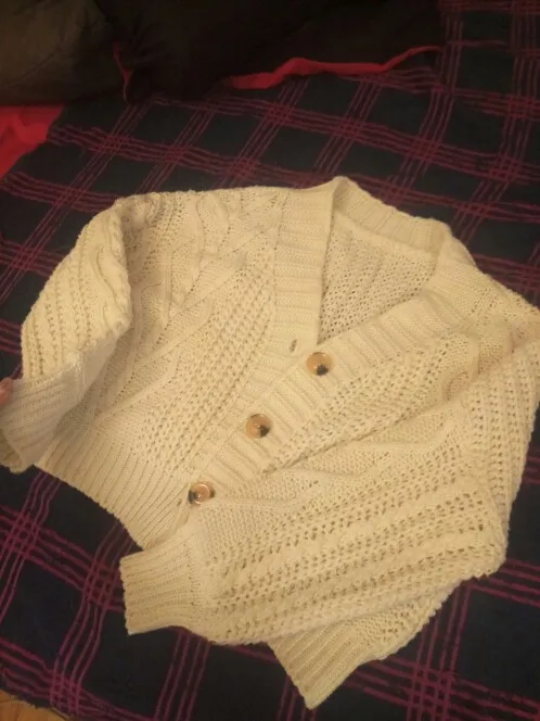 Начнем с того, что продавец отправил заказ сразу же. До Ростова посылка дошла за дней 10-11, чему я очень удивилась. После распаковки почувствовала ужасный запах. Постирала в этот же день, но запах частично остался, думаю, при дальнейших стирках пропадет совсем. Кстати, для тех кто переживает, после стирки форма кардигана осталась та же, не стянулся, все отлично. По качеству и состоянию: вязка не слишком плотная, хорошо продувается. Но сама текстура приятна к телу. Большой минус - торчали нитки. И ладно мелкие на рукавах, это в принципе не заметно, но прямо по середине спины висела огромная нить, будто расплелась вязка. Фото приклеплю. Пришлось засунуть нить сквозь отверстие в вязке во внутреннюю часть и завязать узелок, чтобы совсем не расплелось. Открыла спор, вернули деньги(просила 300 рублей). По размеру: боялась, что будет очень маленьким, так как все в отзывах жалуются на крошечный размер. В итоге он оказался мне даже большеватым, ну выглядит норм, будто оверсайз. (165/42)