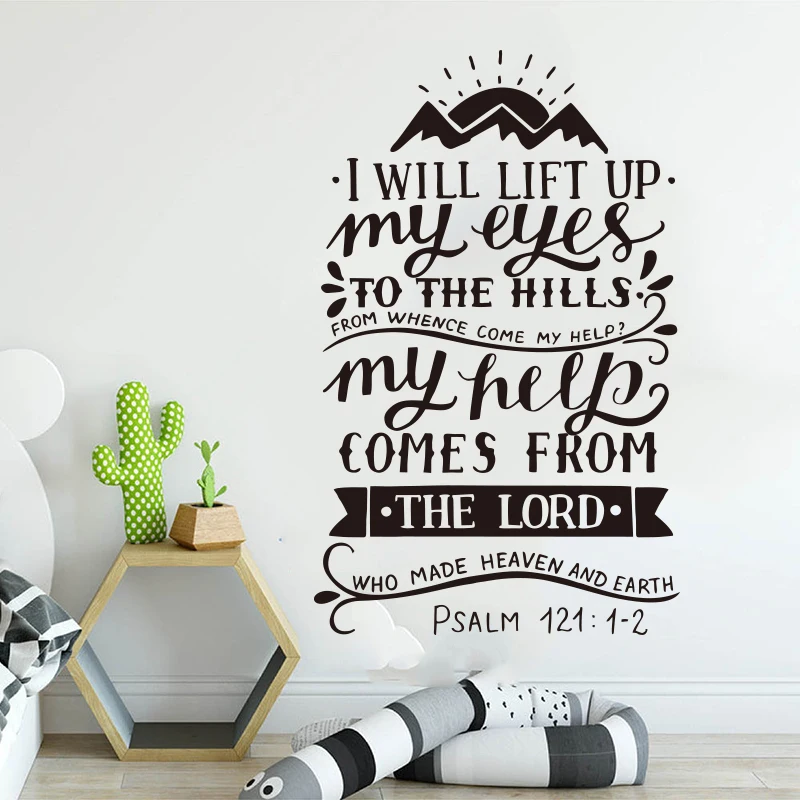 Стикер настенный из Библии с Псалом 121:1-2, Виниловая наклейка на стену для гостиной, кухни, христианского Псалом, вдохновляющие цитаты, украшение для спальни