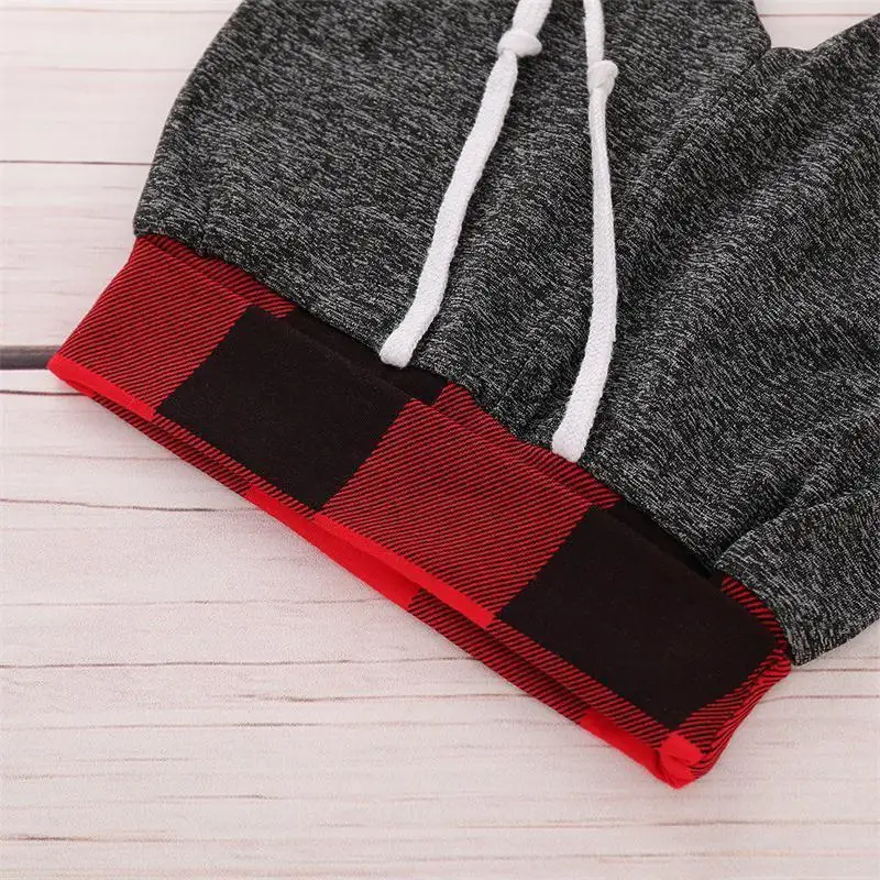 Комплект одежды для новорожденных мальчиков и девочек, толстовка в клетку с капюшоном + длинные штаны комплект одежды из 2 предметов на весну и осень, От 0 до 3 лет одежды для детей