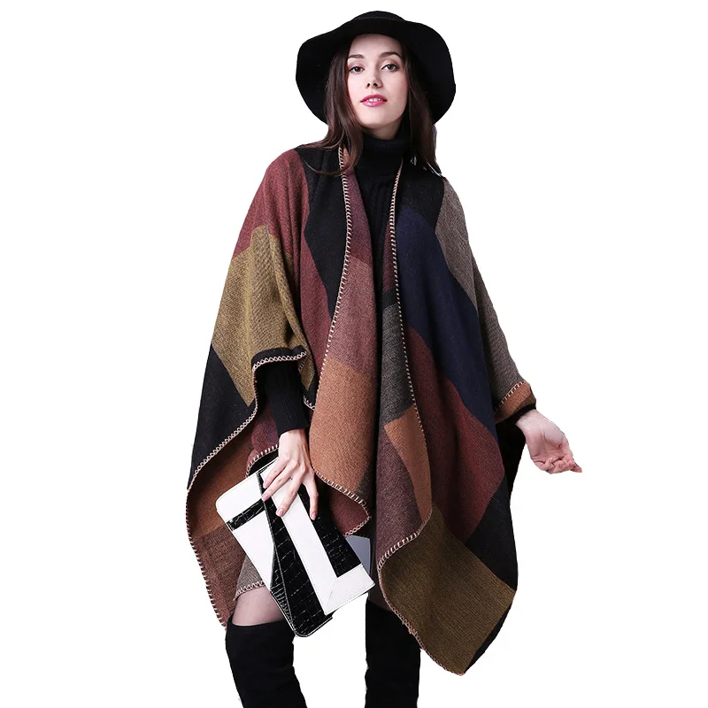Осенний/Модный зимний шарф, утолщенный дизайн, более теплый,Технология сращивания в клетку Joker,Пусть женщина станет более элегантной и красивой,Для изготовления накидки используется имитация Кашемирового материала,Национальный дизайн с разрезом ветра, утолщенная мантия.