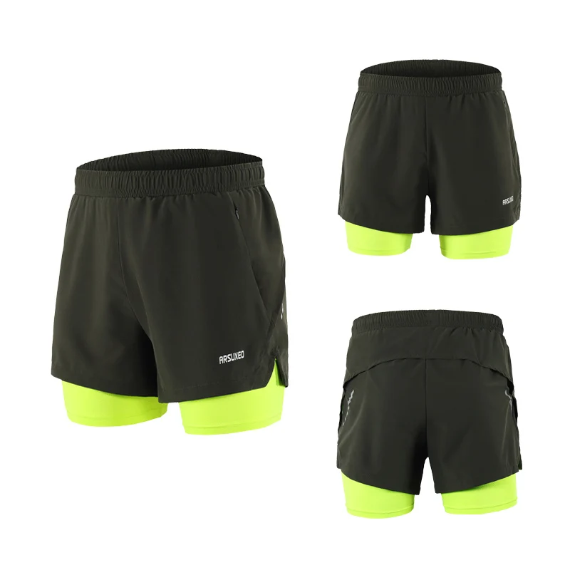 Мужские шорты для бега ARSUXEO, 2 в 1, быстросохнущие спортивные шорты для тренировок, бега с более длинной подкладкой, B202