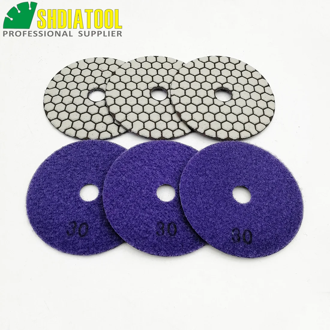 Алмазные полировальные диски SHDIATOOL, насадки для сухой полировки, диаметр 4 дюйма100 мм, #30, для гранита, мрамора, керамики, 6 шт.