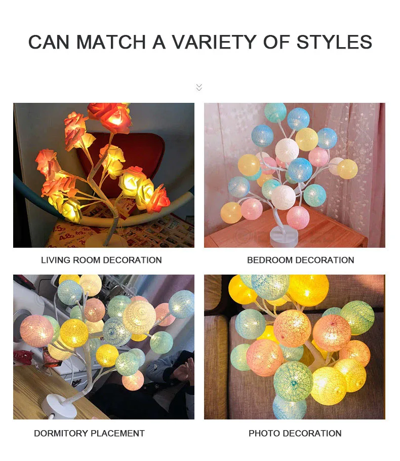 Светодиодный ночник с розовым деревом, светодиодный светильник, USB 24 фары, водонепроницаемый, для свадебной комнаты, креативное украшение, окружающее освещение
