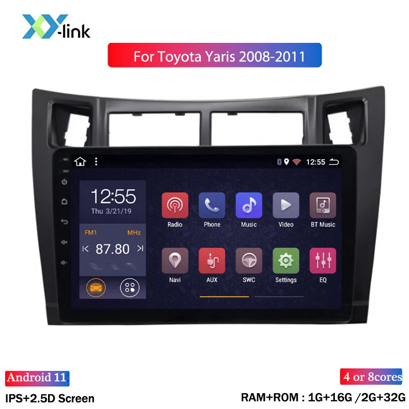 Автомобильный видеопроигрыватель Android 11, 9 дюймовый экран для toyota yaris 2008-2011, автомобильное радио, система GPS-навигации, 2 din, dvd