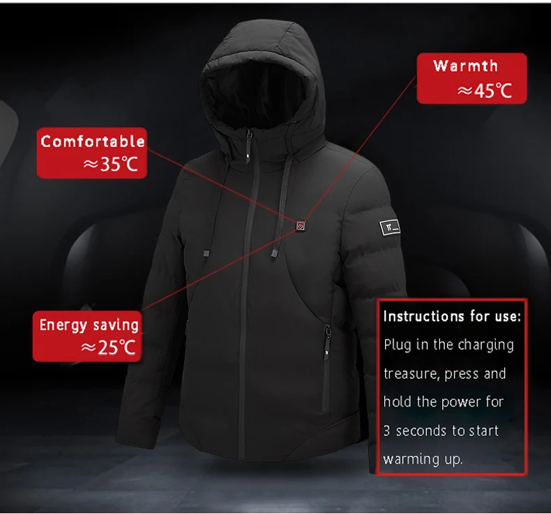 Для мужчин и женщин USB подогревом куртки умный электрический с капюшоном хлопок зимние утепленные куртки на пуху новая альпинистская одежда для велоспорта 7XL