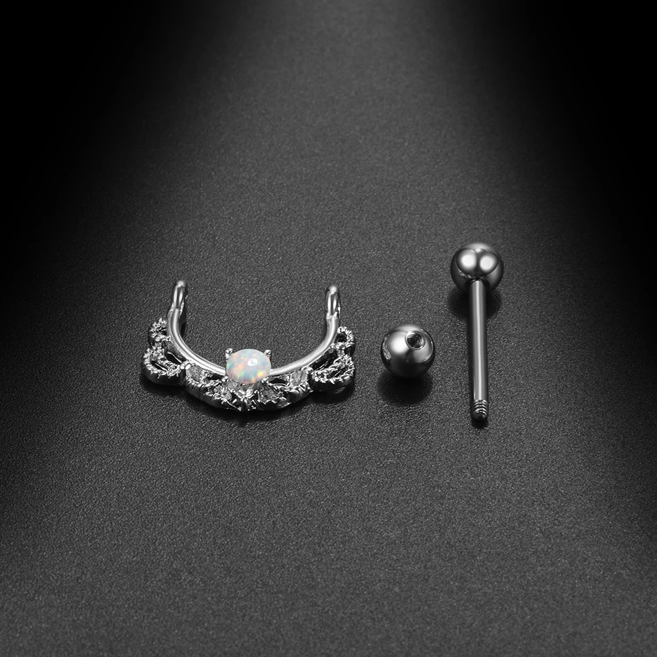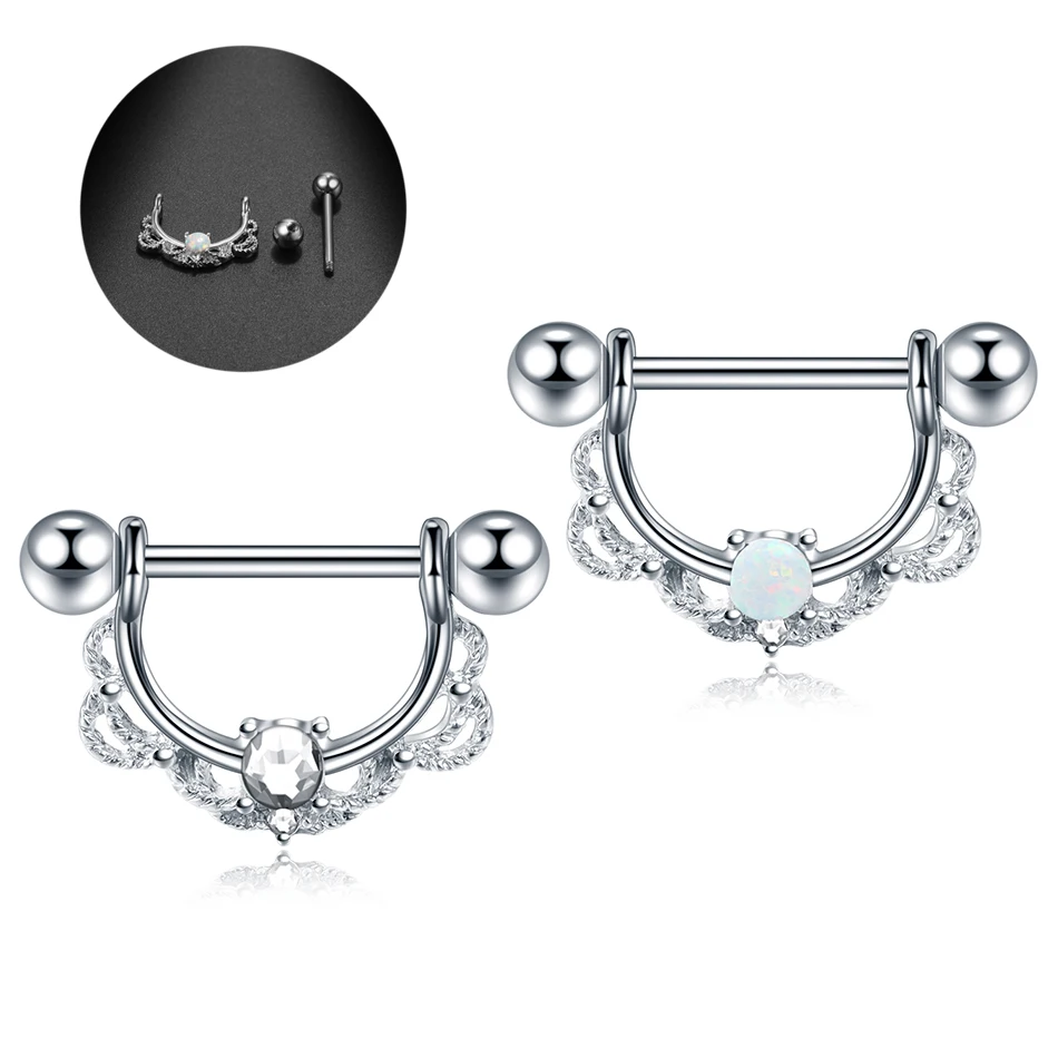 Пирсинг для сосков из стали с опалом, пирсинг для сосков, 14 г, ювелирные украшения с кристаллами, пирсинг, пикантная Женская ювелирные изделия для пирсинга тела Mamilo, 1 шт.