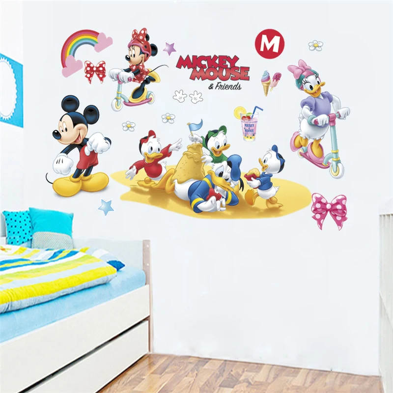 Наклейки на стену с изображением Микки и Минни, утки, для детских комнат, для домашнего декора, настенные наклейки Диснея, ПВХ, росписи, искусство, сделай сам, постеры