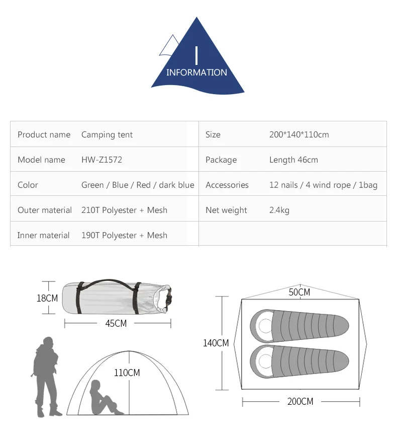Внешний счет: 210T + PU (водонепроницаемость 4000 мм)