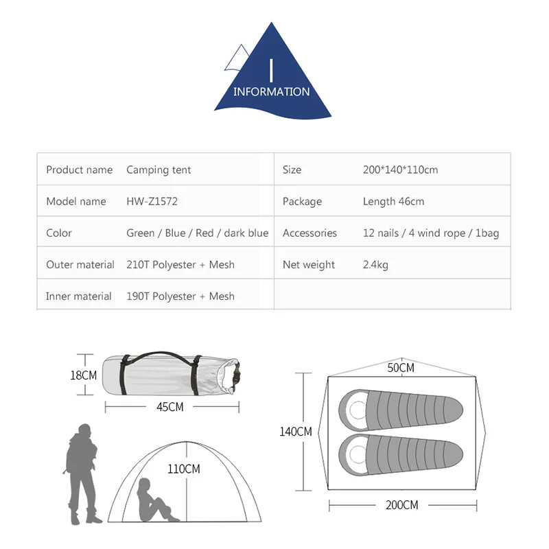 Наружная палатка Hewolf, двухслойная Сверхлегкая палатка для 2 чело...
