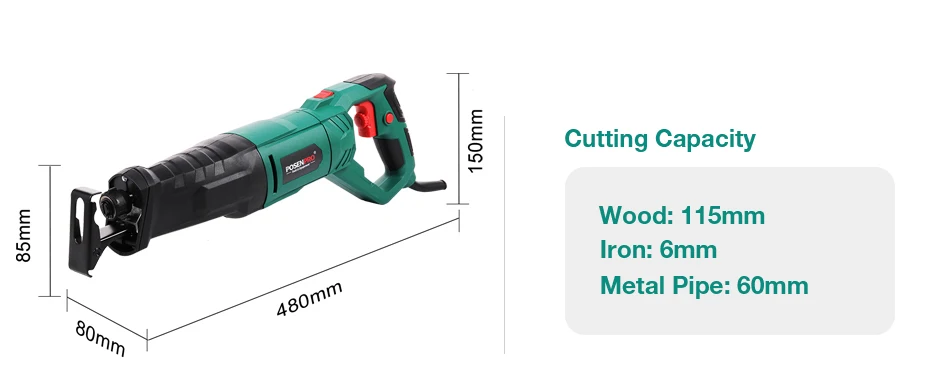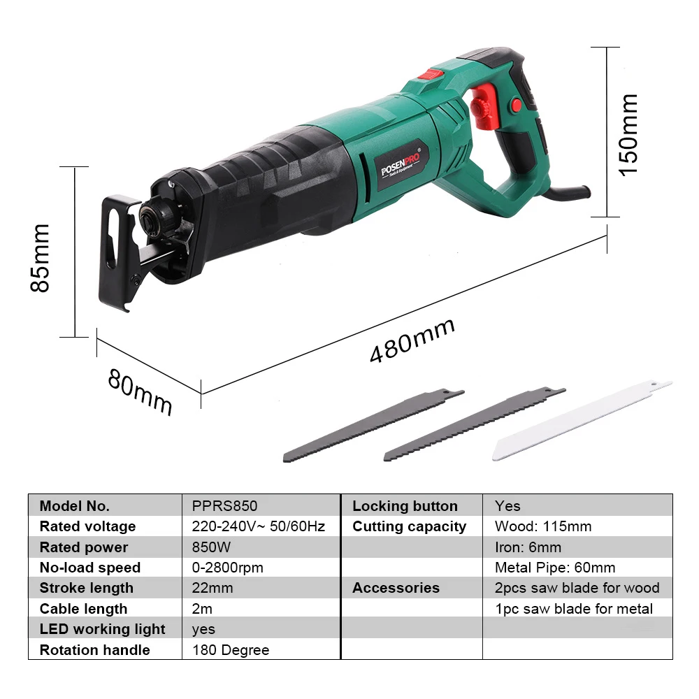 Пила сабельная по дереву и металлу, 850 Вт, с вращающейся ручкой
