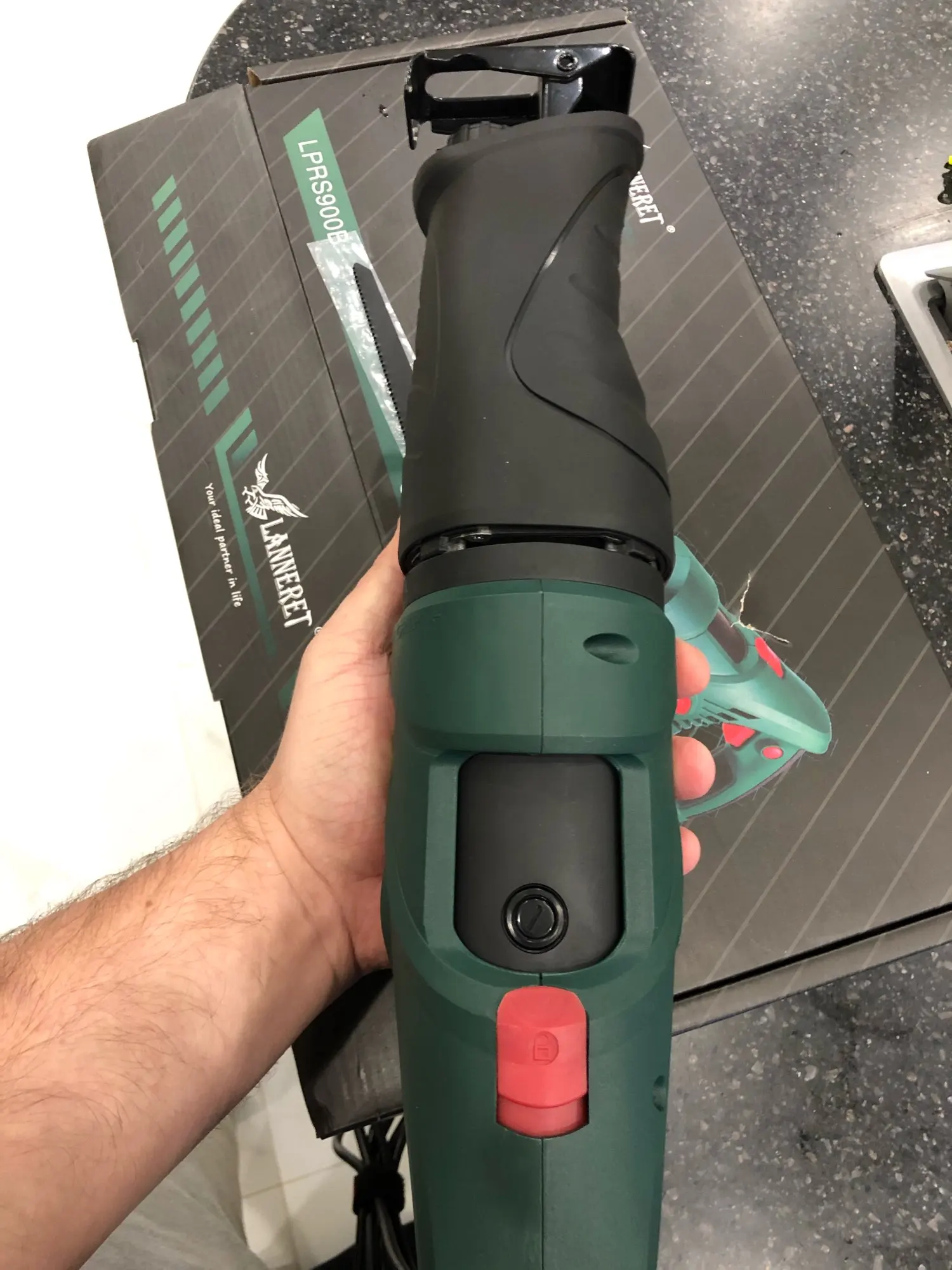 Хорошая пила. Доставка курьером IML до квартиры 4 дня гор. Волгоград. Комплектация полная как в описание. Работать пилой одно удовольствие. Вибрация минимальная не напрягает. Шнур питания около двух метров 1.8 м. Угол поворота пилы 90/90 градусов с фиксацией. Замена щëток очень удобно, без разбора корпуса по бокам пилы. Продавец предоставил скидку 2$ на следующий товар. Приятно. Рекомендую продавца и товар.