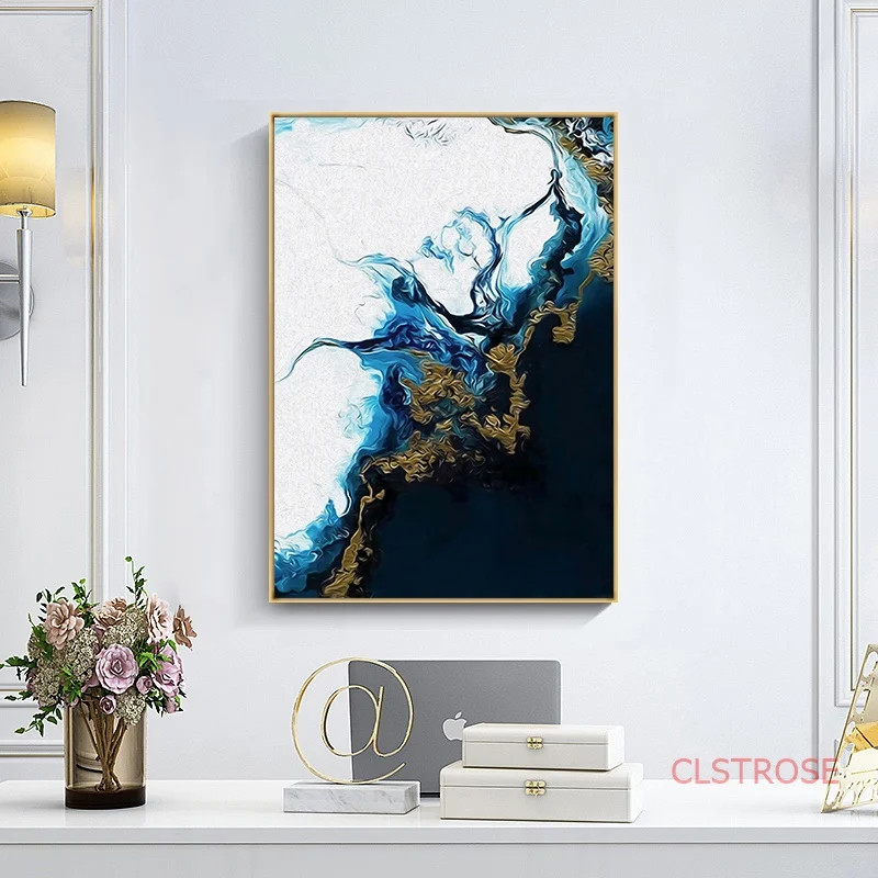 Абстрактный постер на холсте в скандинавском стиле, Золотая и синяя Настенная картина, декоративные настенные картины для гостиной, Современный домашний декор