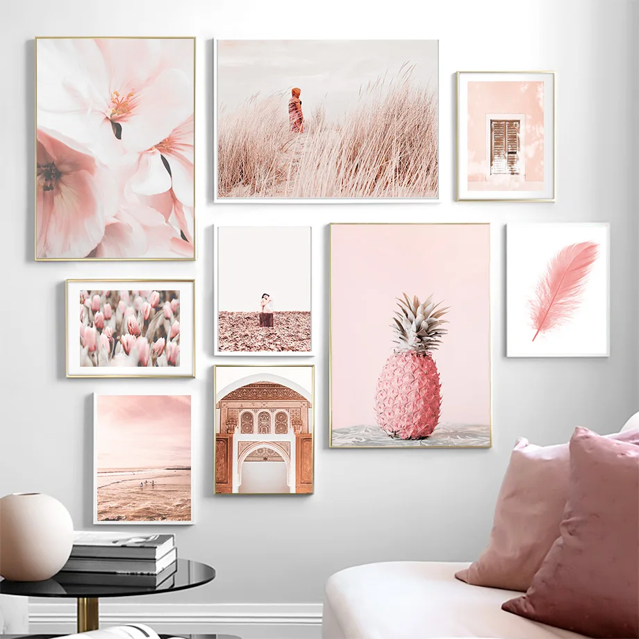 Настенные постеры с розовыми цветами, цветами вишни, розой, пионами...