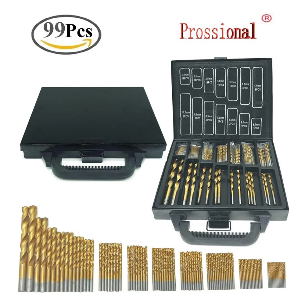 99 шт. 1,5 мм-10 мм титановые сверла HSS с покрытием из нержавеющей...
