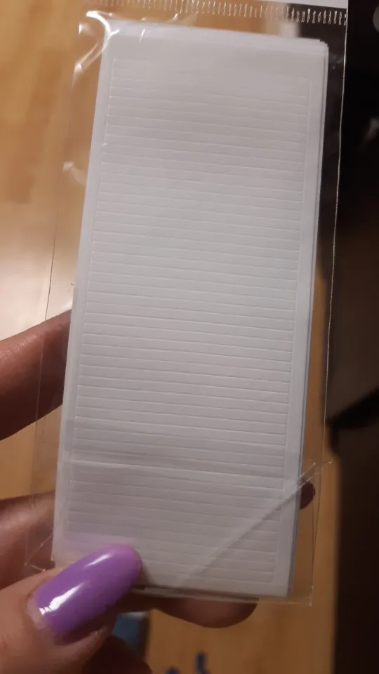 Доставка около 3 недель . Полоски упакованы хорошо, повреждений нет . Немного не то, что я представляла. Одна часть липкой ленты отклеивается не очень легко от бумаги. Если разобраться и приспрсобиться, то польза от них есть. Удобно формировать пучки.
