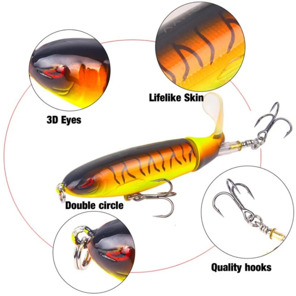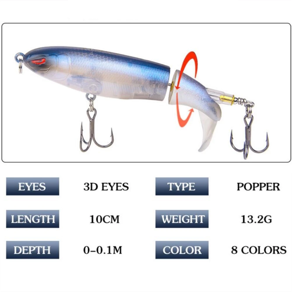 8 шт.лот Whopper Plopper, рыболовные приманки 10 см 17 г, топвотер, карандаш, приманка, воблер, искусственная мягкая Рыболовная Снасть с вращающимся хвостом