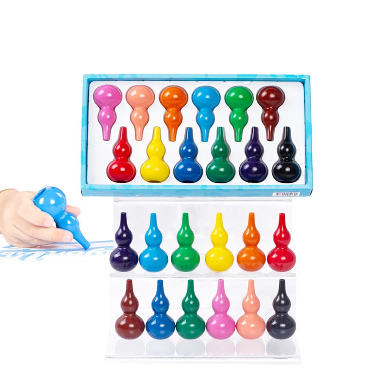 Восковые карандаши, 12 цветов, нетоксичные, съедобные, для детей, для рисования, новый безопасный 3D набор карандашей с рисунком цветные кисточки