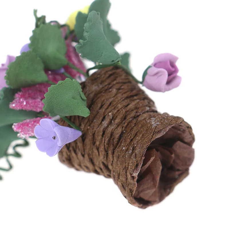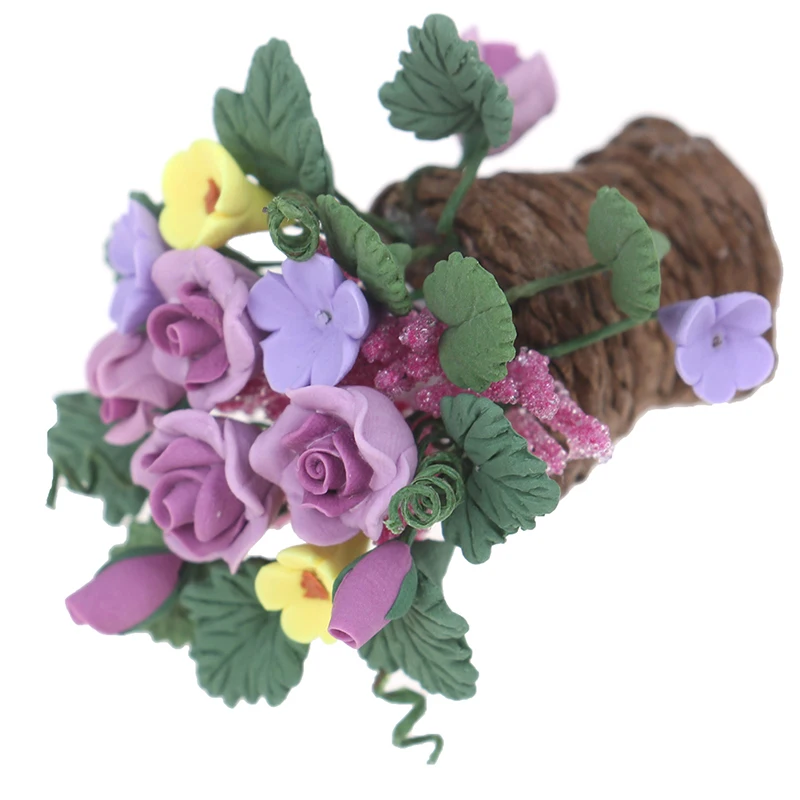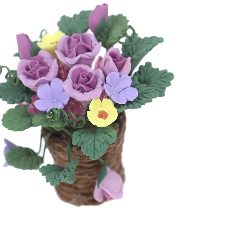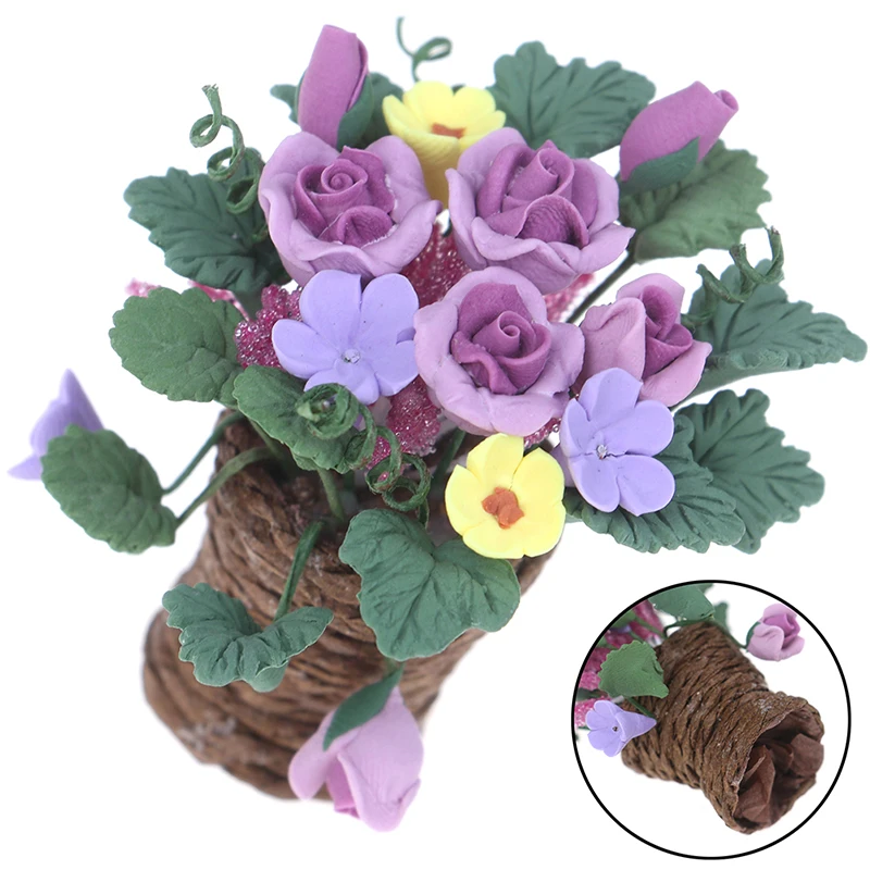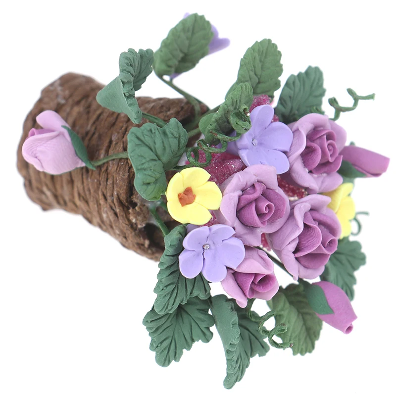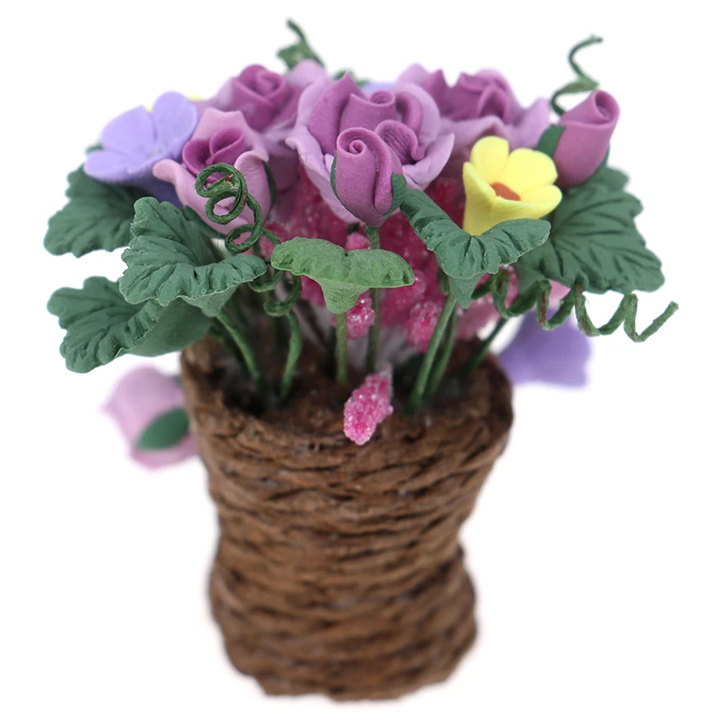 Кукольный домик миниатюрные глиняные цветы в горшок из Ротанга Плантатор Сказочный Сад принадлежности для растений масштаб 1:12 фиолетовый цветок