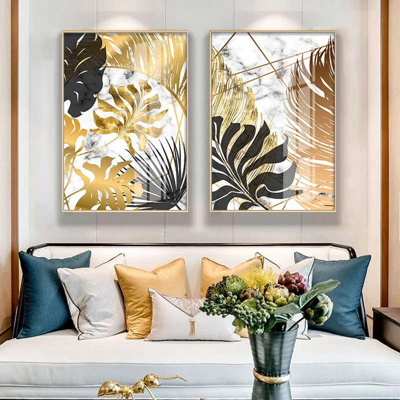 Картина на холсте с изображением золотых черных листьев растений мраморные скандинавские постеры и принты настенные художественные картины для гостиной современный домашний декор