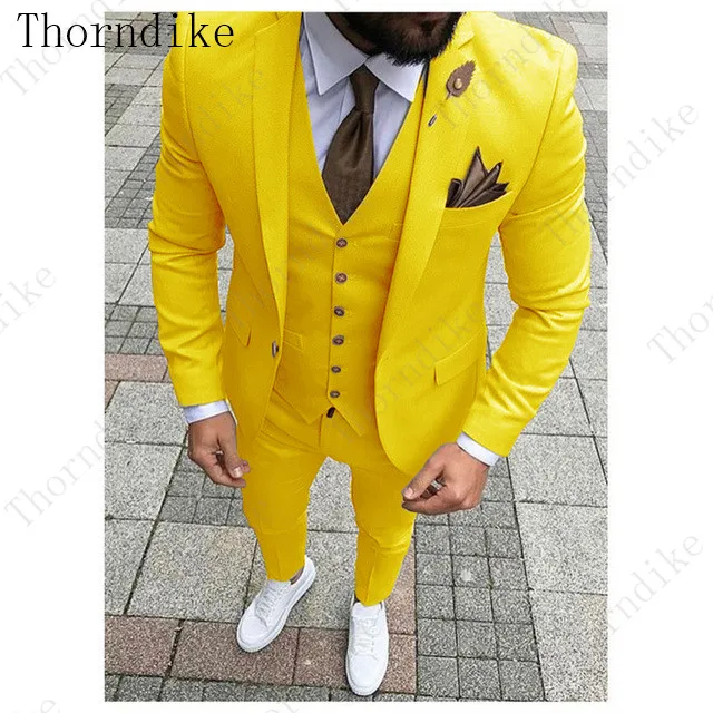 Мужской костюм из трех предметов Thorndike, желтый деловой костюм с...
