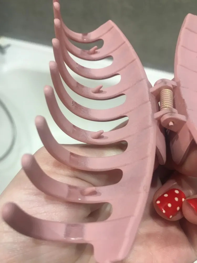 Хорошая заколка, если носить каждый день, то слегка стирается краска на кончиках. Но это не критично, смотрится дорого-богато и цвет очень стильный.
