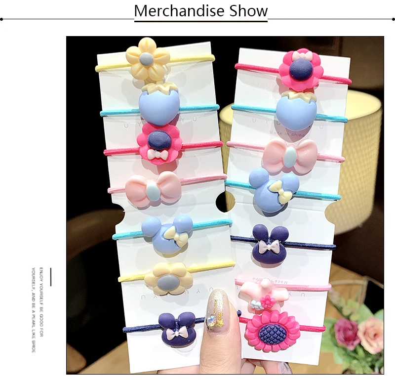 Резинка для волос с цветным бантом, цветком, Кроликом, 20 шт.компл.