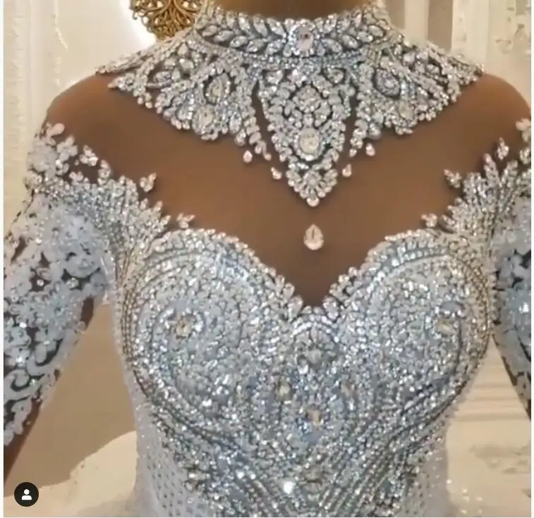 Роскошные свадебные платья Дубай Стразы с кристаллами Кружевная аппликация с длинными рукавами пушистые Бальные платья 3D цветочное свадебное платье 2020