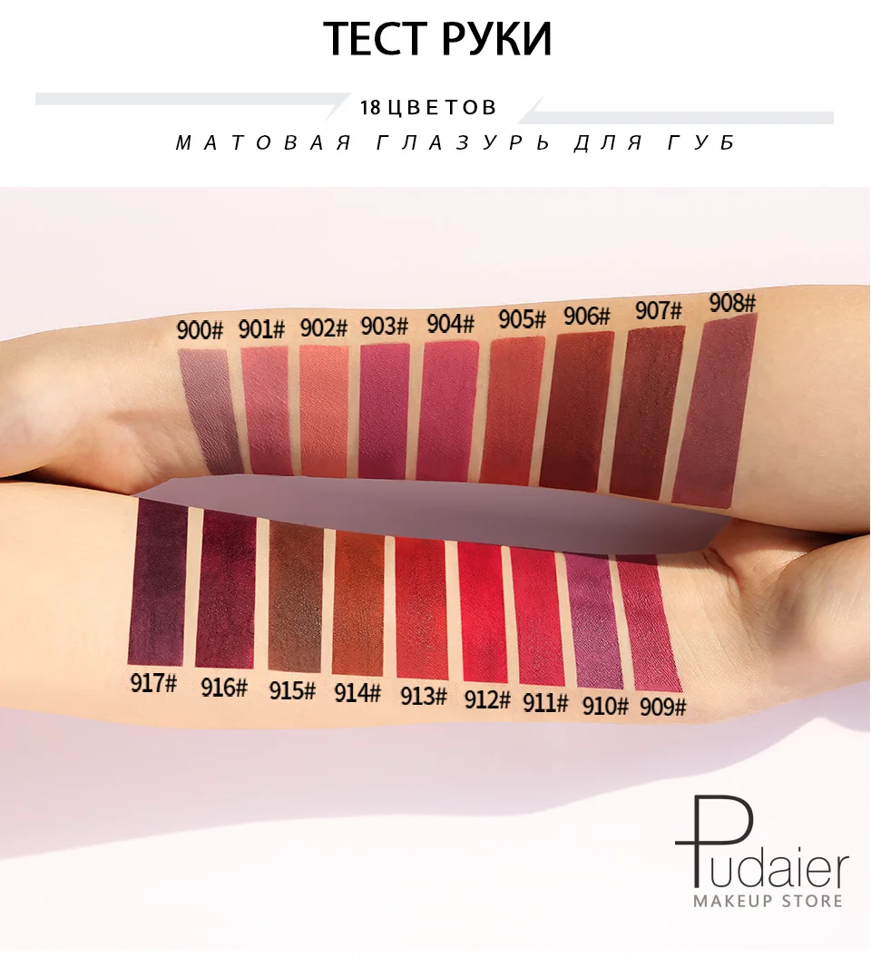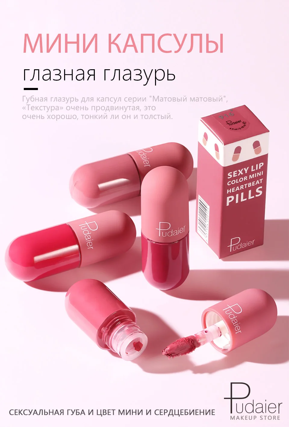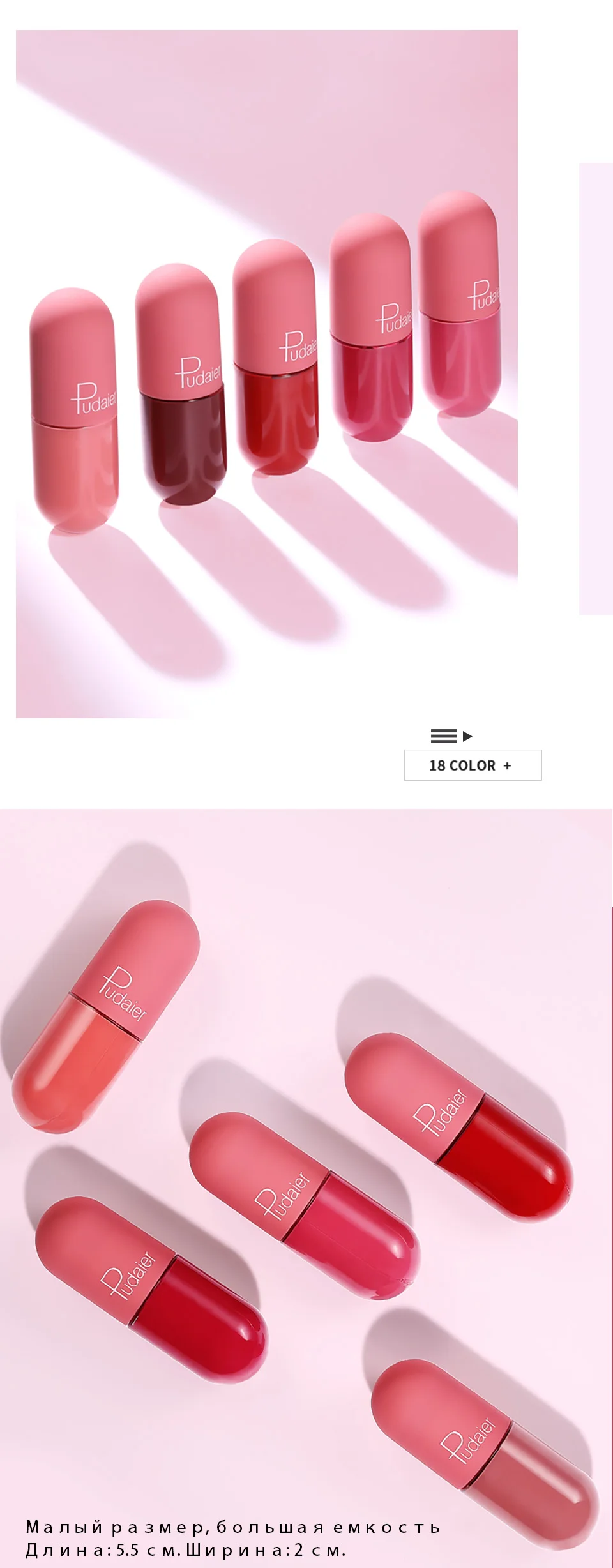 Матовая жидкая губная помада Pudaier, водостойкий профессиональный макияж, полный портативный блеск для губ, для макияжа, оттенок, блеск для губ, мини-косметика