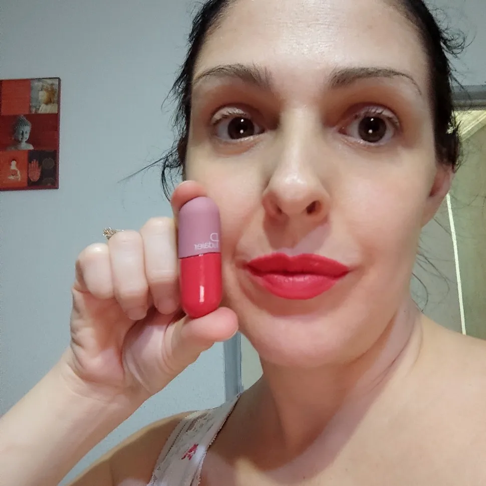 Это действительно мини-помада, влюбленная в цвет, такая пигментированная и быстрая доставка, купит его снова, это хорошо для путешествий, размер спасибо за подарок продавцу.