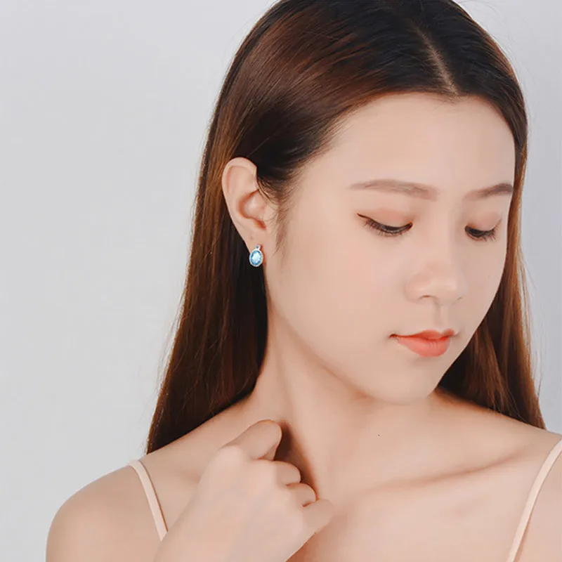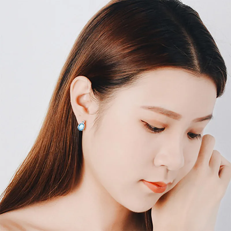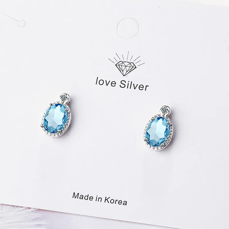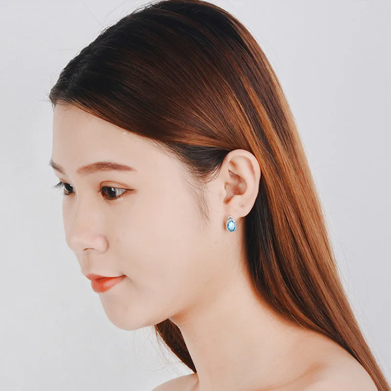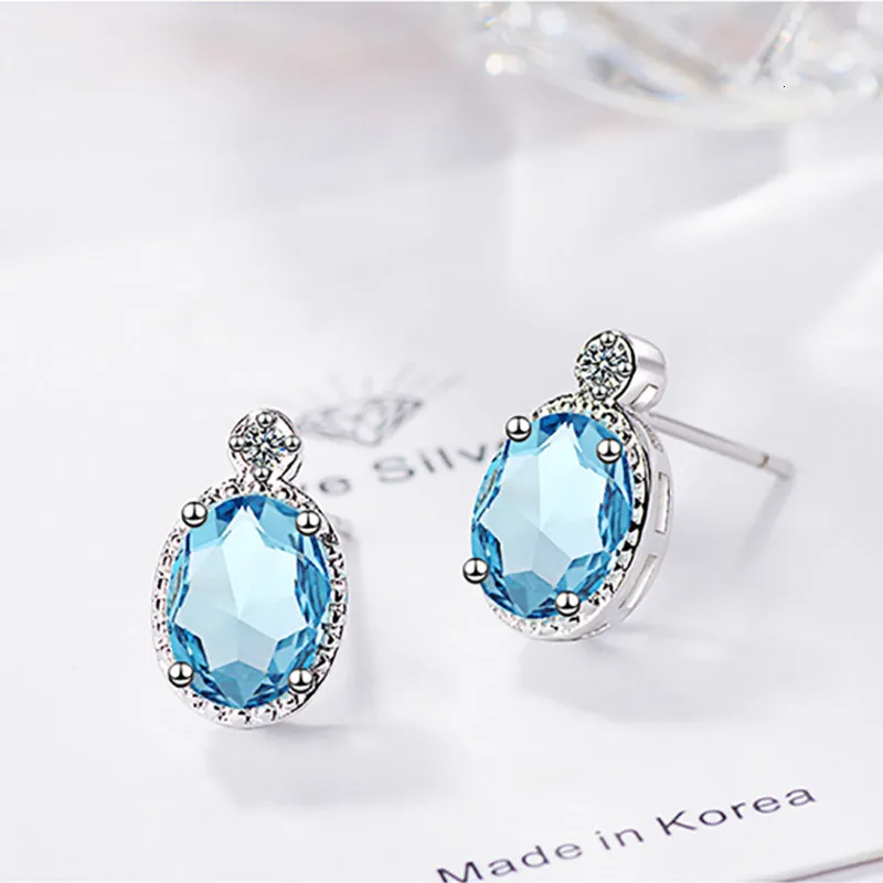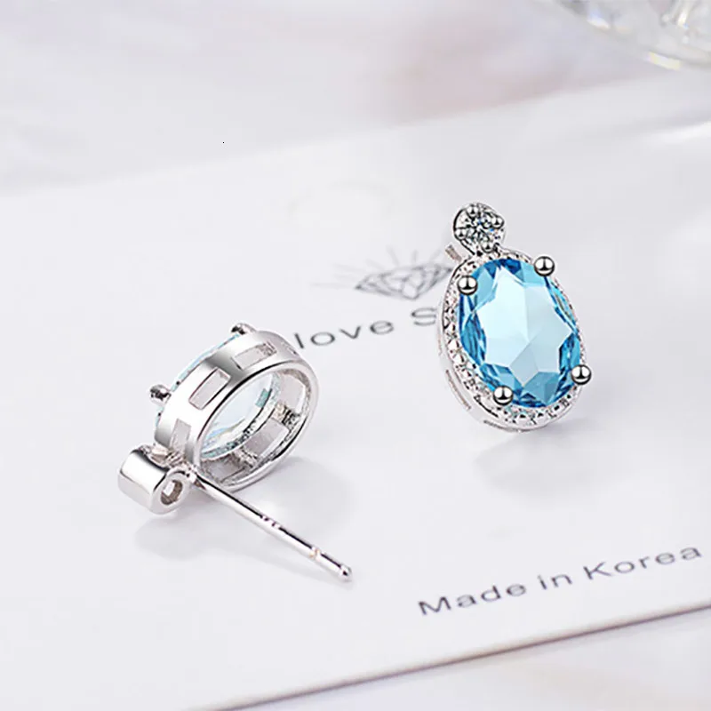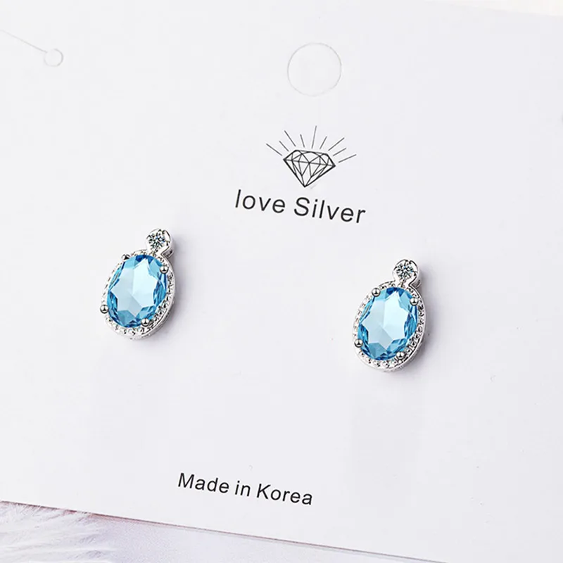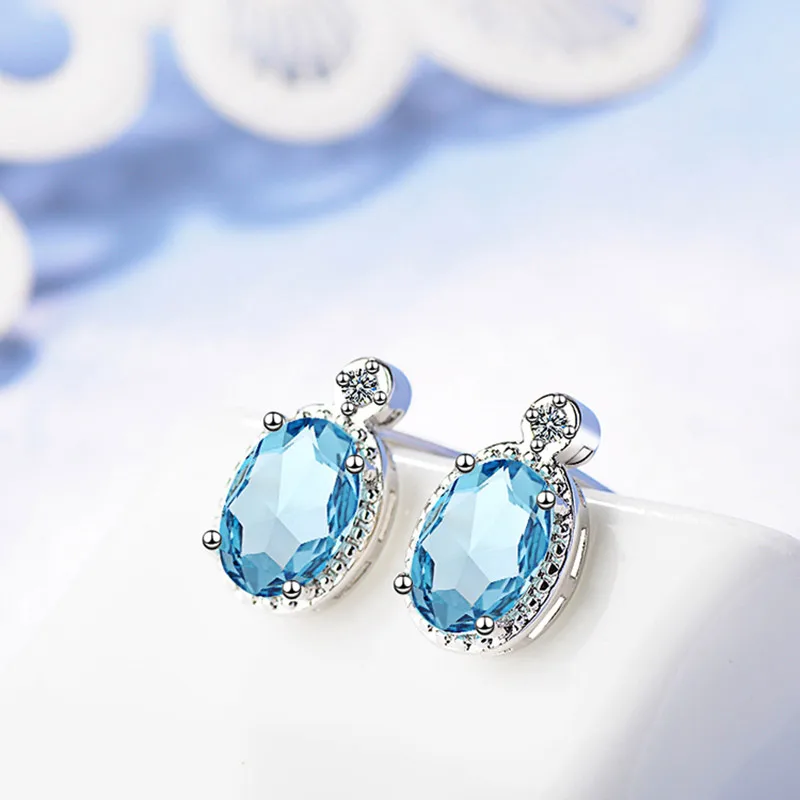 Женские серьги из серебра 925 пробы с овальными аквамариновыми камнями