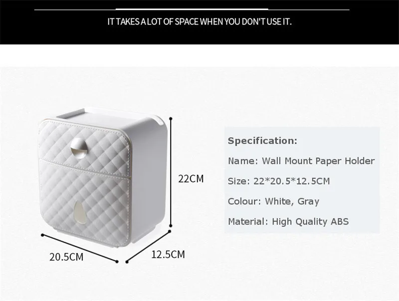 Спецификация: Наименование: настенный держатель для бумаги Материал: высококачественный АБС-пластик Размер: 01 -- 22*20,5*12,5 см; 02 -- 24,5*12*14,2 см Цвет: белый, серый
